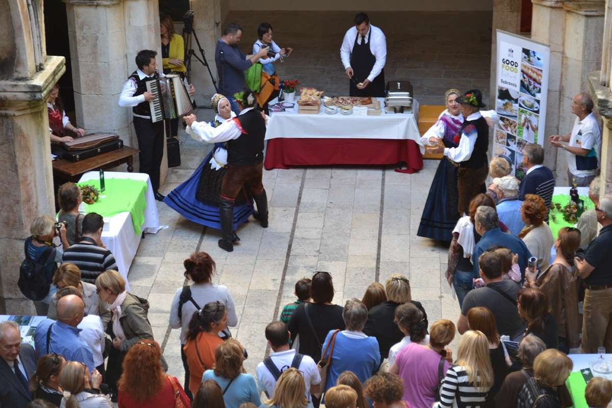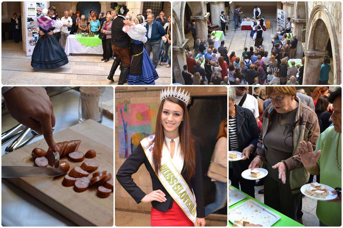 On Sunday morning in the atrium of the Sponza Palace Dubrovnik citizens had a unique opportunity to taste the typical local products from the Slovenian city of Bled. Except for the food, Slovenians gave another special gift to Dubrovnik – performance of the Slovenian folklore ensemble. Promotion of Bled was dedicated to the citizen of Dubrovnik and Bled, Ivo Rudenjak, who has passed away.