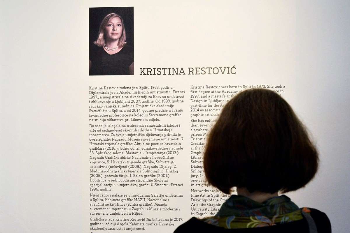 About the works: Restović’s graphics are created on the basis of her computer-generated and artfully-modified photographs, which are then mirrored by the author on the zinc plate and subjected to her primary graphic media, classical bakeware and dry needles. The curator of the exhibition is dr.sc. Rozana Vojvoda, senior curator of the Museum of Modern Art Dubrovnik, and you can read more about author here.