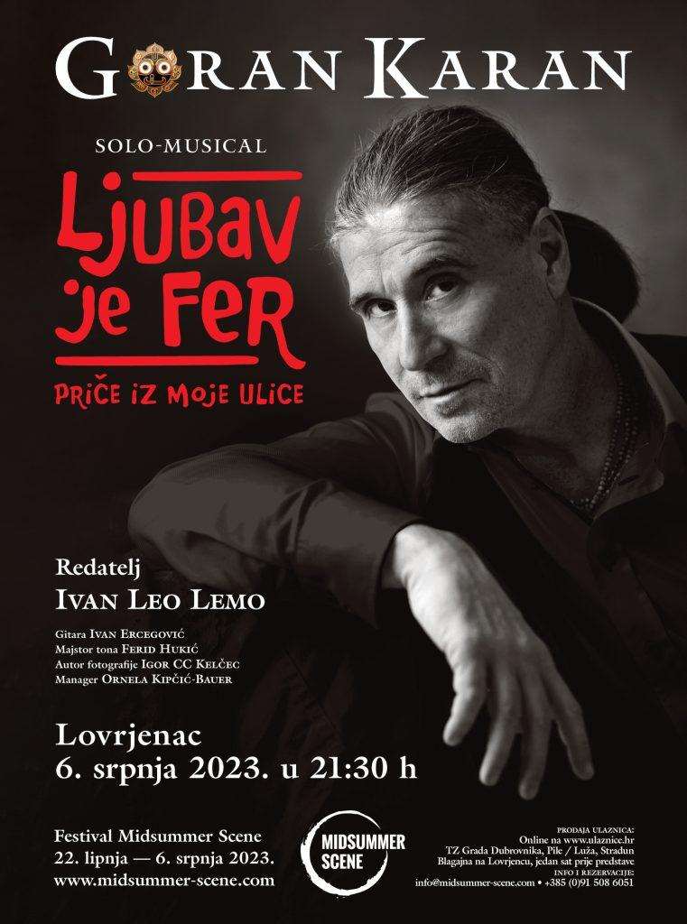 In addition to the musical the Lovrjenac Fortress will also witness a spectacular finale to this year’s festival. On July 6th, Goran Karan will present the premiere of his solo musical “Love is Fair” (Stories from My Street), a performance that promises to leave no one indifferent.