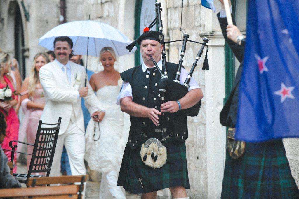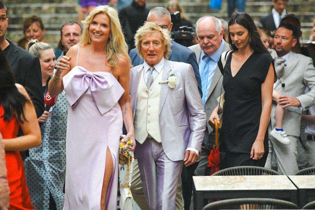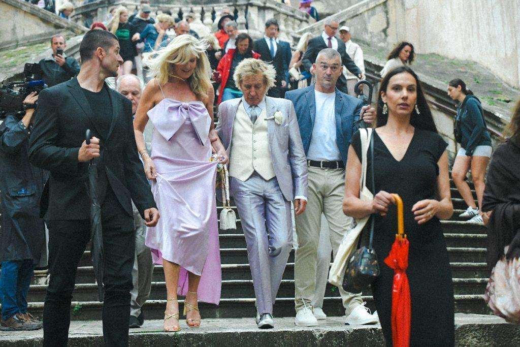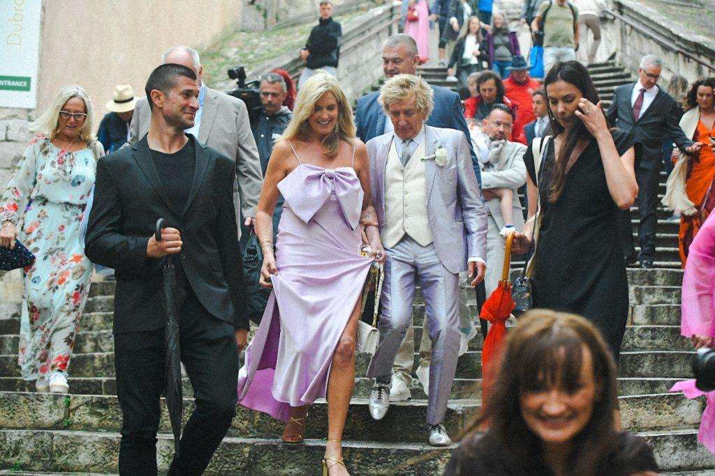 The wedding featured flags from Croatia, the USA, New Zealand, and Scotland, along with Scottish bagpipers whose tunes got Rod Stewart dancing. You can watch the video here. Many tourists in Dubrovnik gathered to catch a glimpse of Rod Stewart and the newlyweds, greeting them with ovations.
