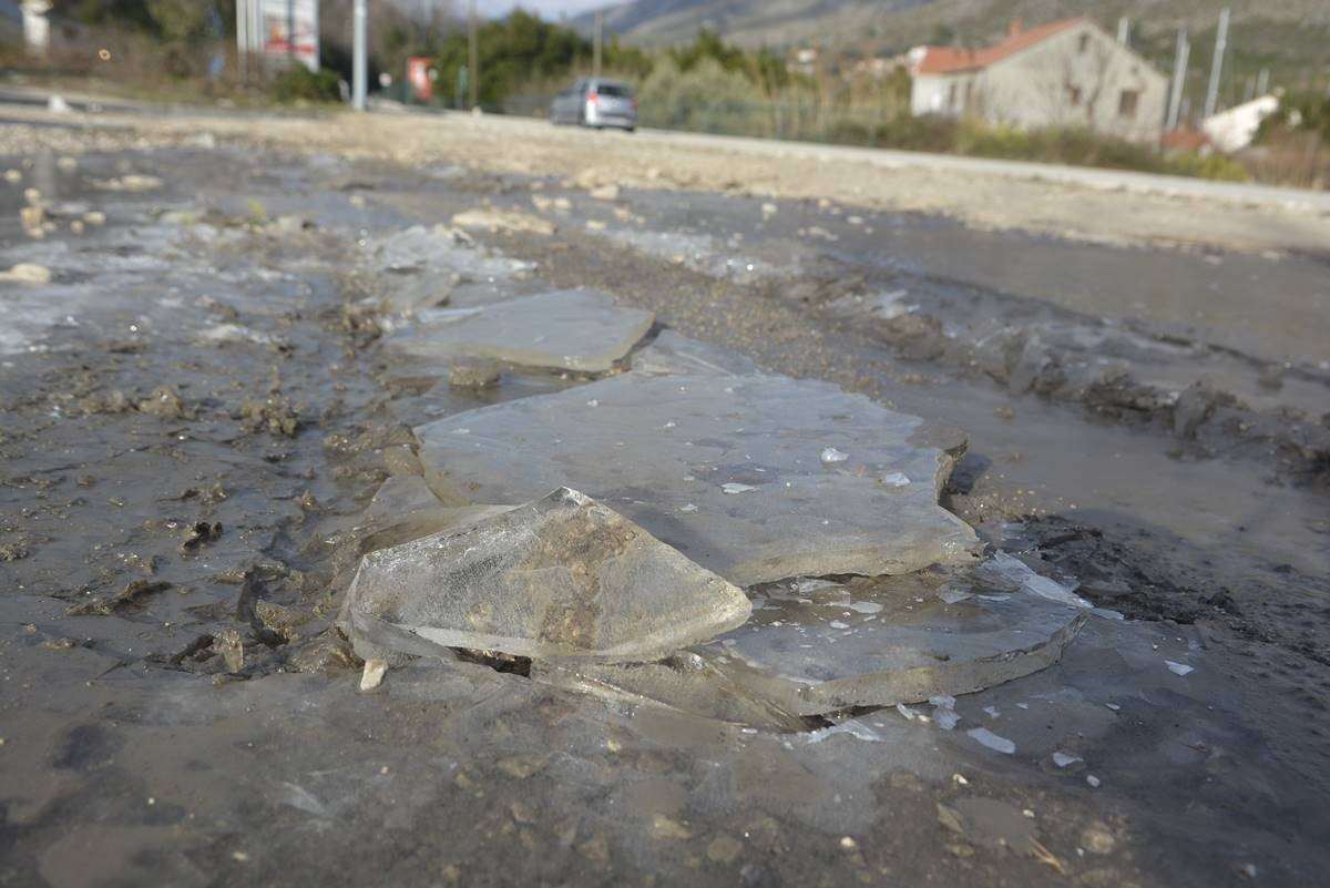 For the last seven days, Dubrovnik is facing very low temperatures that reach up to minus. Ice covered almost every puddle including this one shot in Komolac, which turned into a mini skating rink. Although beautiful, such ice circles can cause a lot of problems for pedestrians, so we advise you to take care as you walk down the street and enjoy the winter art.