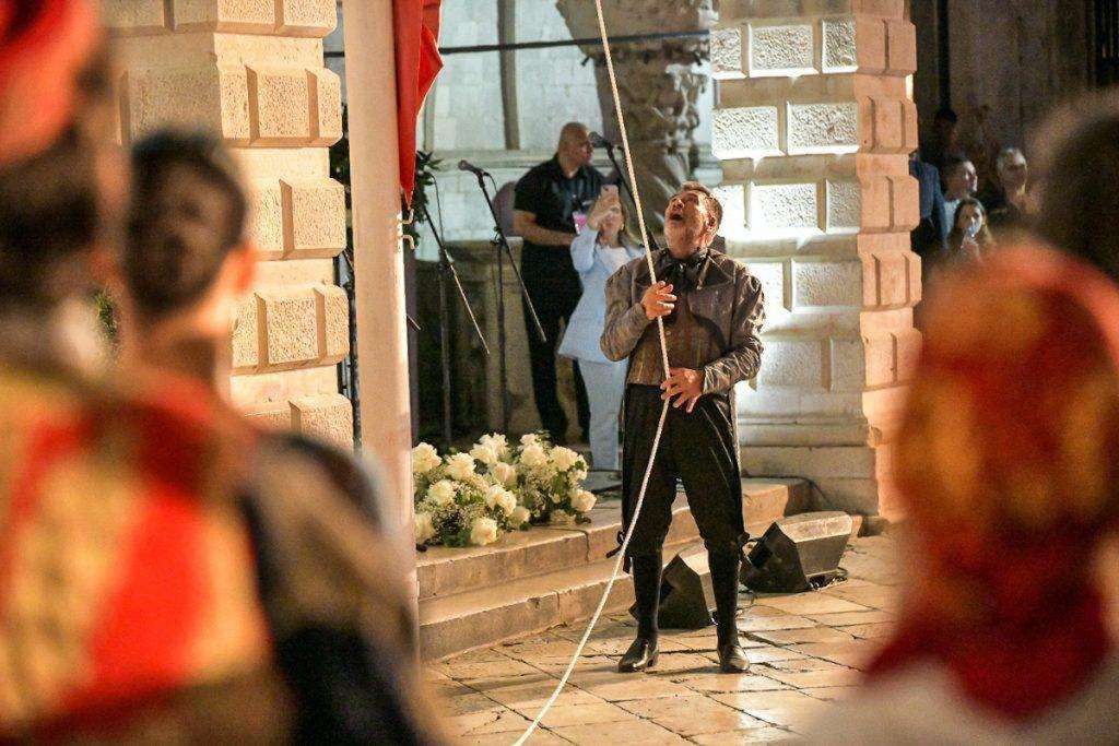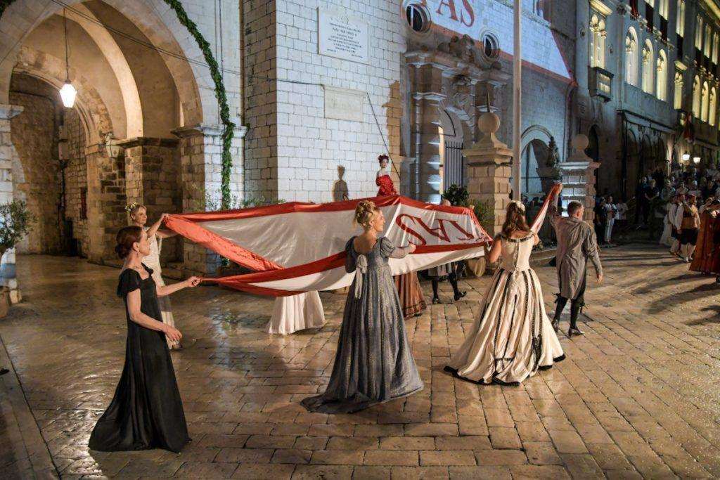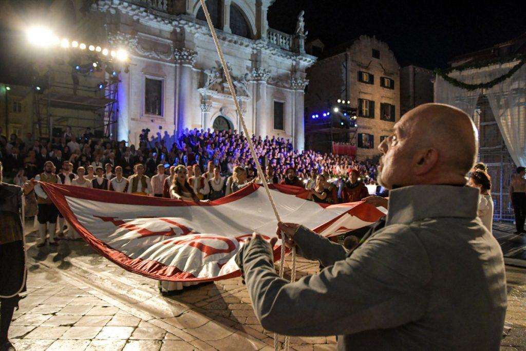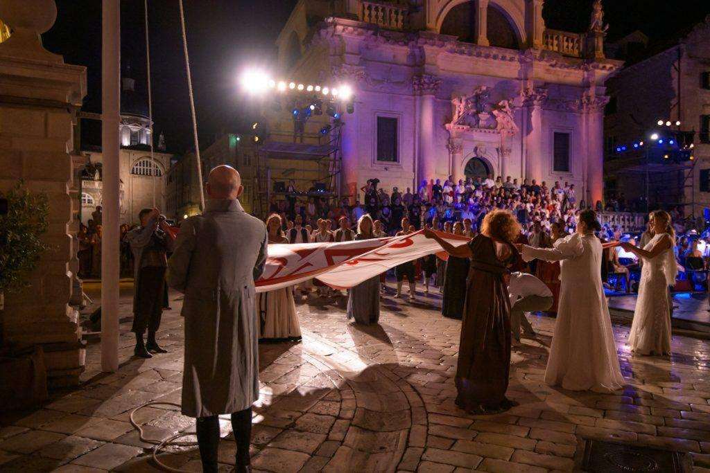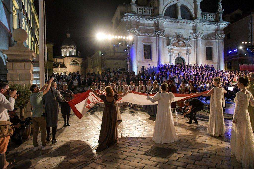This year’s opening ceremony was directed by Paolo Tišljarić and featured the Festival Drama Ensemble, the Dubrovnik Symphony Orchestra conducted by Valentin Egel, mezzo-soprano Dubravka Šeparović Mušović, the Libertas Choir, the Dubrovnik Chamber Choir, the Academic Choir Pro musica Mostar, the Blasius Choir, the Konavle Folk Choir, the Linđo Folklore Ensemble, members of the Croatian National Theatre Ballet in Zagreb, the “Step ‘n Jazz” Dance Studio, the Kolarin Drama Club, the “Dubrovnik Coastal Weddings” Association – Upper Villages of Dubrovnik, the Stjepan Radić Cultural Club, and the Marko Marojica Cultural Club.