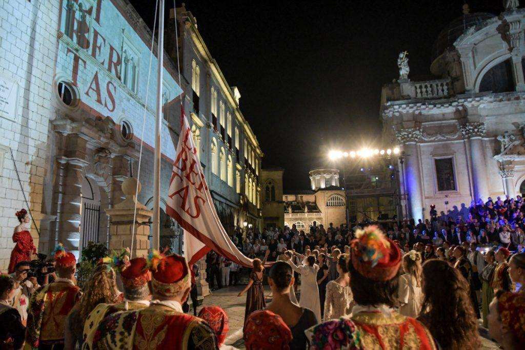 With the traditional raising of the Libertas flag accompanied by the verses of Gundulić’s Hymn to Liberty in front of St. Blaise’s Church, the jubilee 75th Dubrovnik Summer Festival was ceremoniously opened.