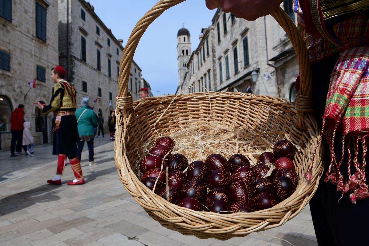 On Palm Sunday, or the Sunday before Easter, olive branches and woven palm fronds, which are characteristic of the Dubrovnik region, are brought to churches to be blessed and Easter eggs are hand painted in the traditional way.
